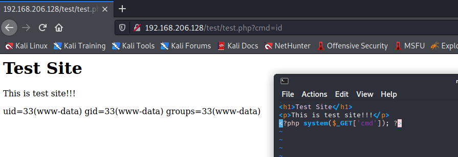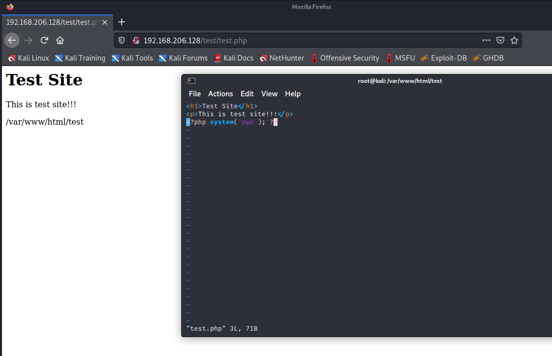 웹사이트에 pwd의 결과가 출력되는 것을 확인할 수 있다.