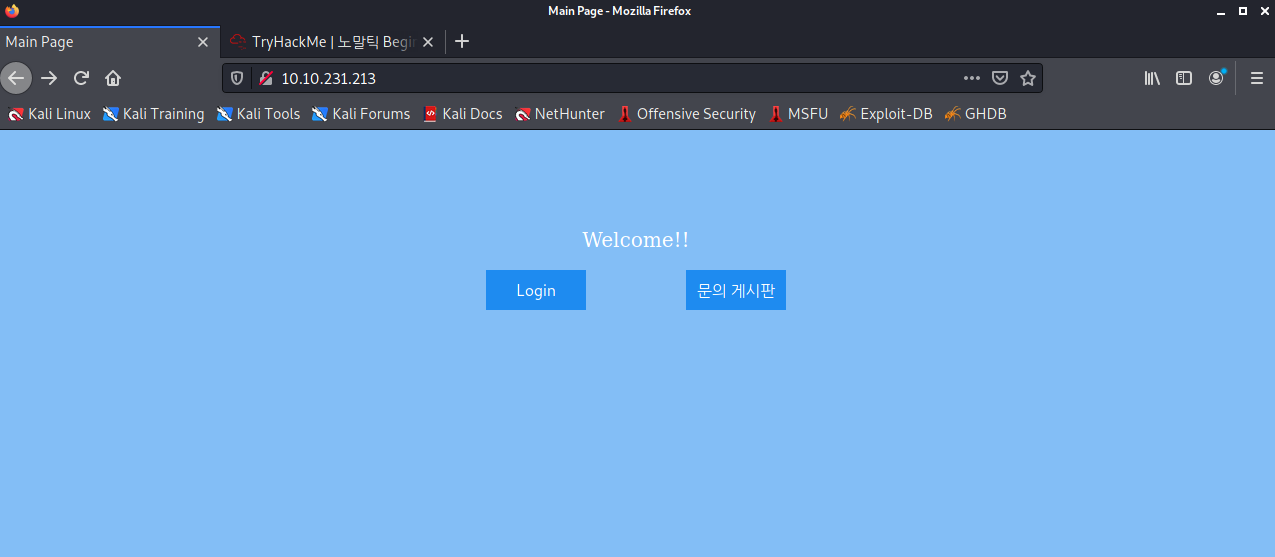 웹사이트가 열려있음을 확인했기에 해당 사이트에 접속을 해보았다.