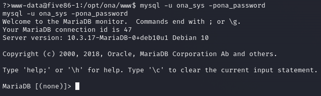 이제 사용 중인 db인 ona_onadb에 들어가 정보를 확인해 보자