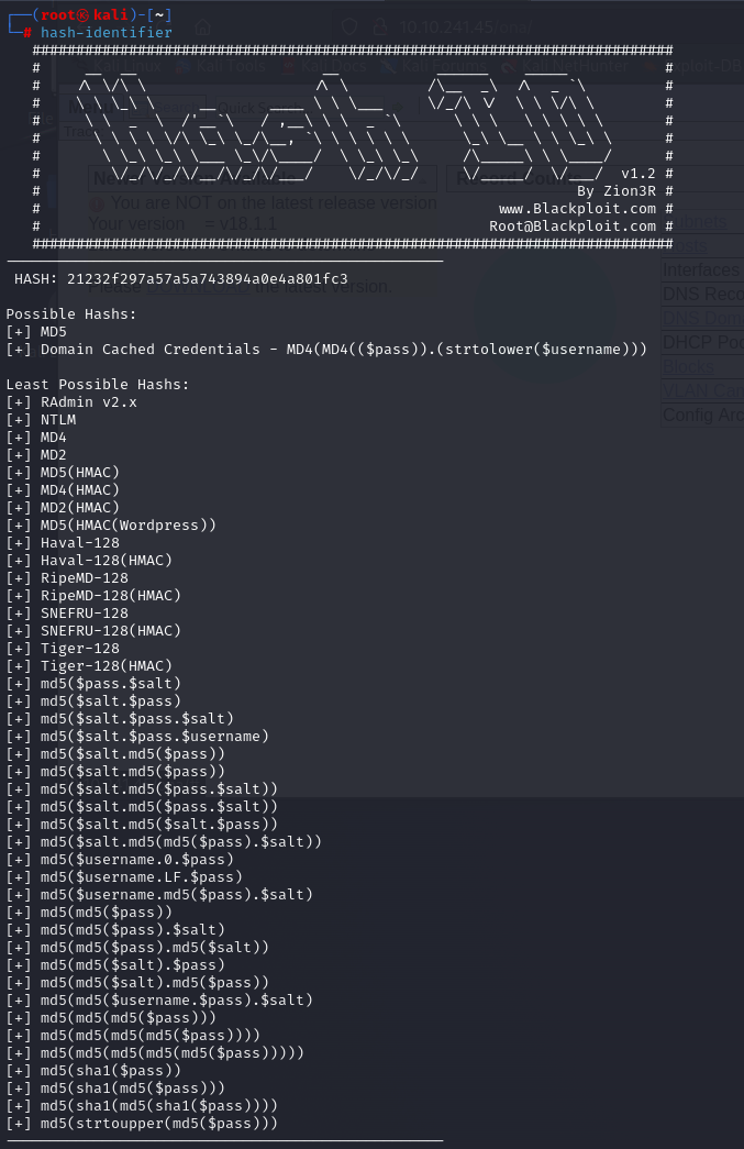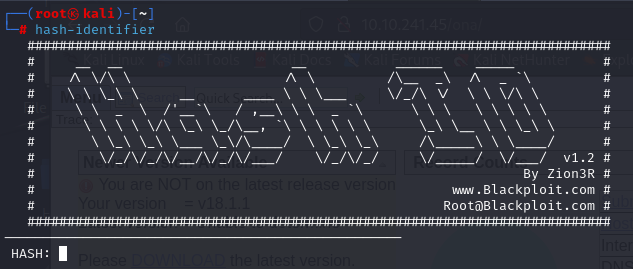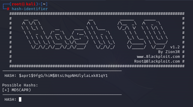 먼저 해당 password가 어떤 방법으로 해시되었는지 hash-identifier를 사용하여 확인해 보자