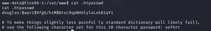 douglas라는 사용자와 그 사용자의 해시된 password를 확인할 수 있다