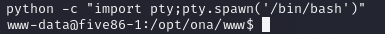 python -c "import pty;pty.spawn('/bin/bash')"