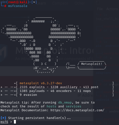 그럼 해당 화면이 출력되며 metasploit 콘솔로 들어가게 되는데