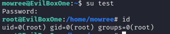 이제 su test 명령어를 사용해 root 권한을 가진 유저로 계정을 변경하자