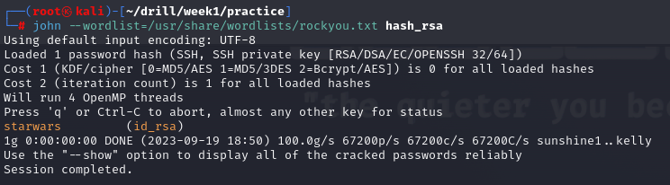 개인키의 비밀번호가 starwars 임을 알 수 있다