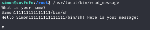 현재 프로그램은 root의 권한으로 실행되기 때문에 /bin/sh을 실행하게 되면 root의 쉘을 획득할 수 있을 것이다