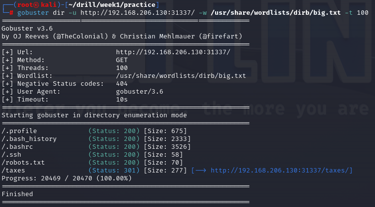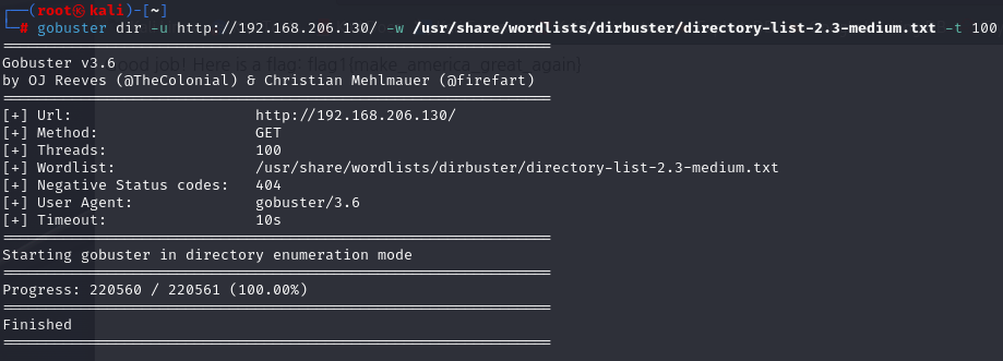 gobuster [모드 선택] -w [단어 리스트] -u [URL 주소] -t [스레드 갯수]