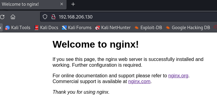 192.168.206.130이 실습 머신임을 확인할 수 있다.