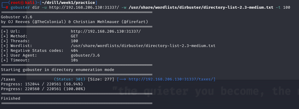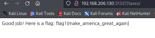 31337번 포트에서는 /taxes 디렉터리가 있는 것을 확인할 수 있다