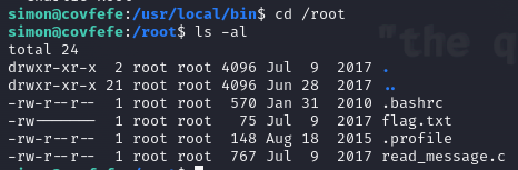 그러니 이러한 문구가 출력이 되는데 root가 자신의 홈 디렉터리에 소스코드를 보내놨다고 알려준다