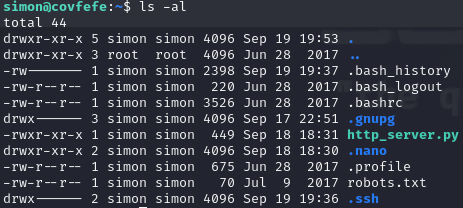 공개키를 확인해 보니 simon이라는 유저의 ssh키임을 확인할 수 있다
