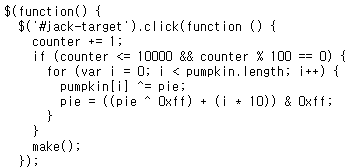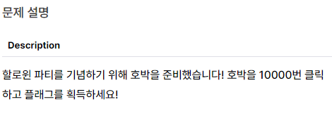 해당 문제는 아래의 호박 그림을 10000번 클릭하면 flag값을 출력하는 문제이다.