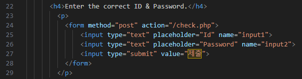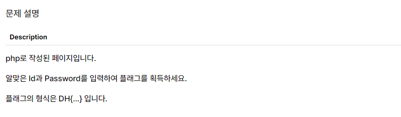 정해진 id와 pw값을 지정한 후 form을 통해 입력받은 데이터와 비교하여 맞을 경우 flag를 아닐 경우 에러를 출력한다.