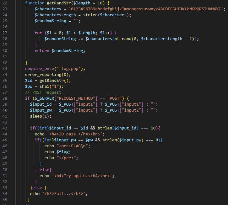input_id 값이 랜덤 한 문자열과 동일하고 10자리라면 ID pass를 출력하고 그 후