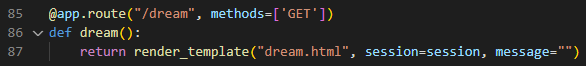 해당 페이지에 접속하였을 때 화면에 dream.html을 출력하는 코드이다.