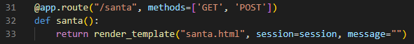 해당 페이지에 접속하였을 때 화면에 santa.html을 출력하는 코드이다.